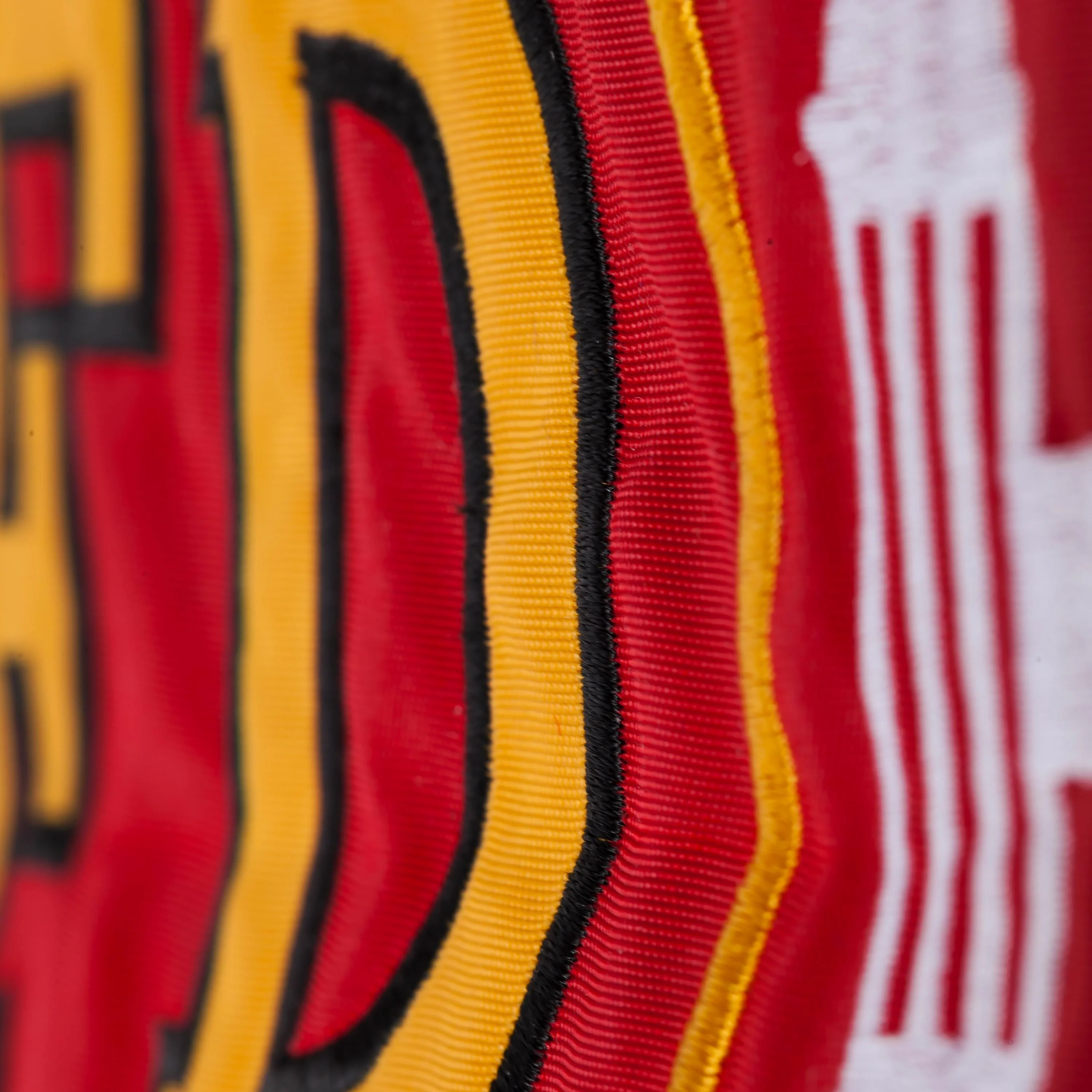 Add a touch of your personality and welcome guests warmly to your home and garden with this decorative flag. This applique flag is made of durable 310 denier nylon to ensure the design will withstand all types of weather. The applique process combines pieces of fade resistant fabric with tight, detailed stitching to create a mosaic effect. The soft, yet heavy-weight material illuminates in the sunlight, making any of our applique flags a wonderful addition to your home or garden. All flags also feature an insertion sleeve at top for use with any standard flagpole or stand, sold separately. This garden-sized flag measures 12.5 inches wide and 18 inches long.