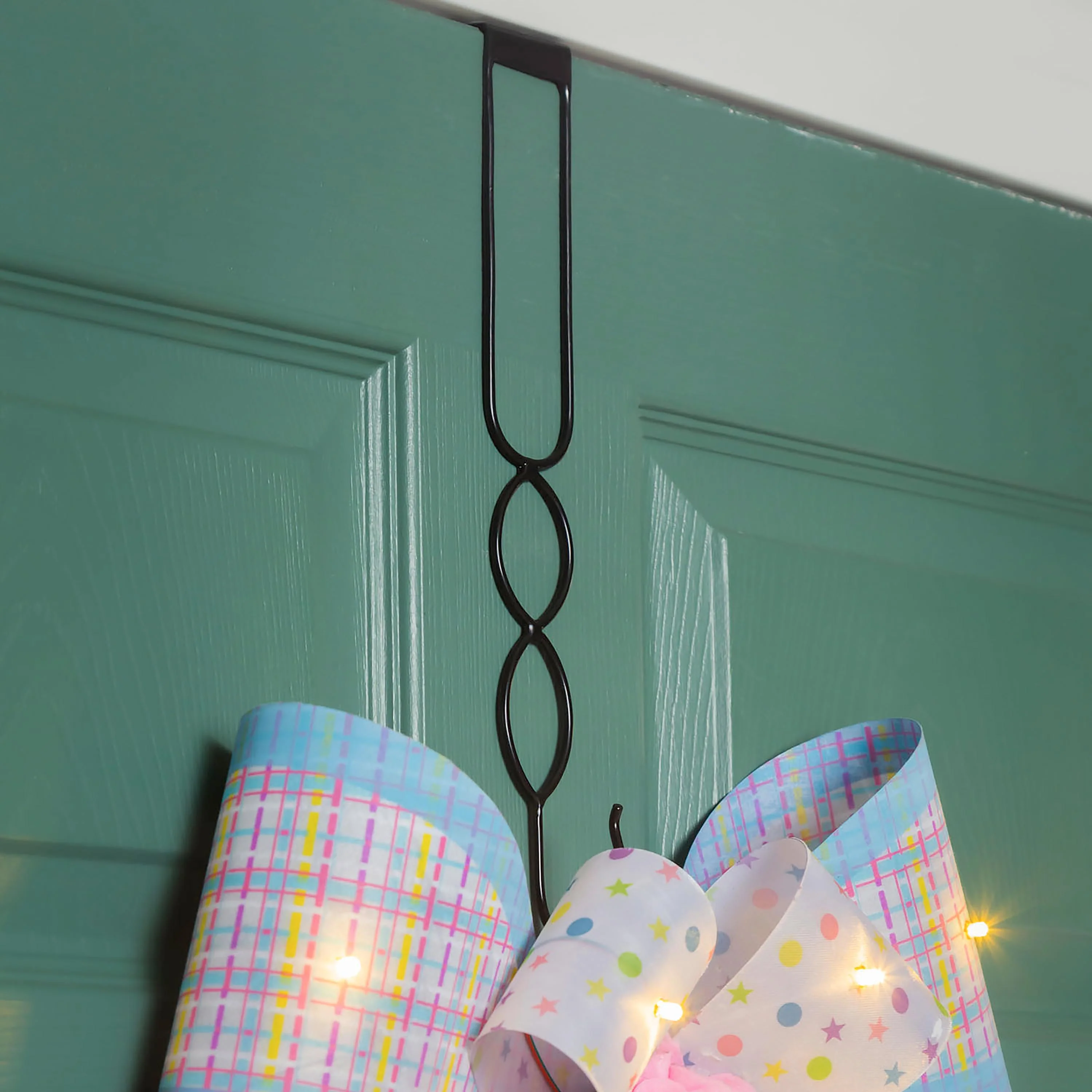 A sturdy and pleasing way to hang wreaths, door tags, and more. This decorative Door Tag Over-the-Door Hanger will allow you to get creative when welcoming guests to your home. A stylish door Decor perfect for year round use. Show your personality by hanging something that brings out the unique in you. Perfect for using with our Door decor and Door Tag collections, this piece of hardware is versatile and weather-proof, ensuring it lasts season after season. This hanger will fit over most standard-sized doors.