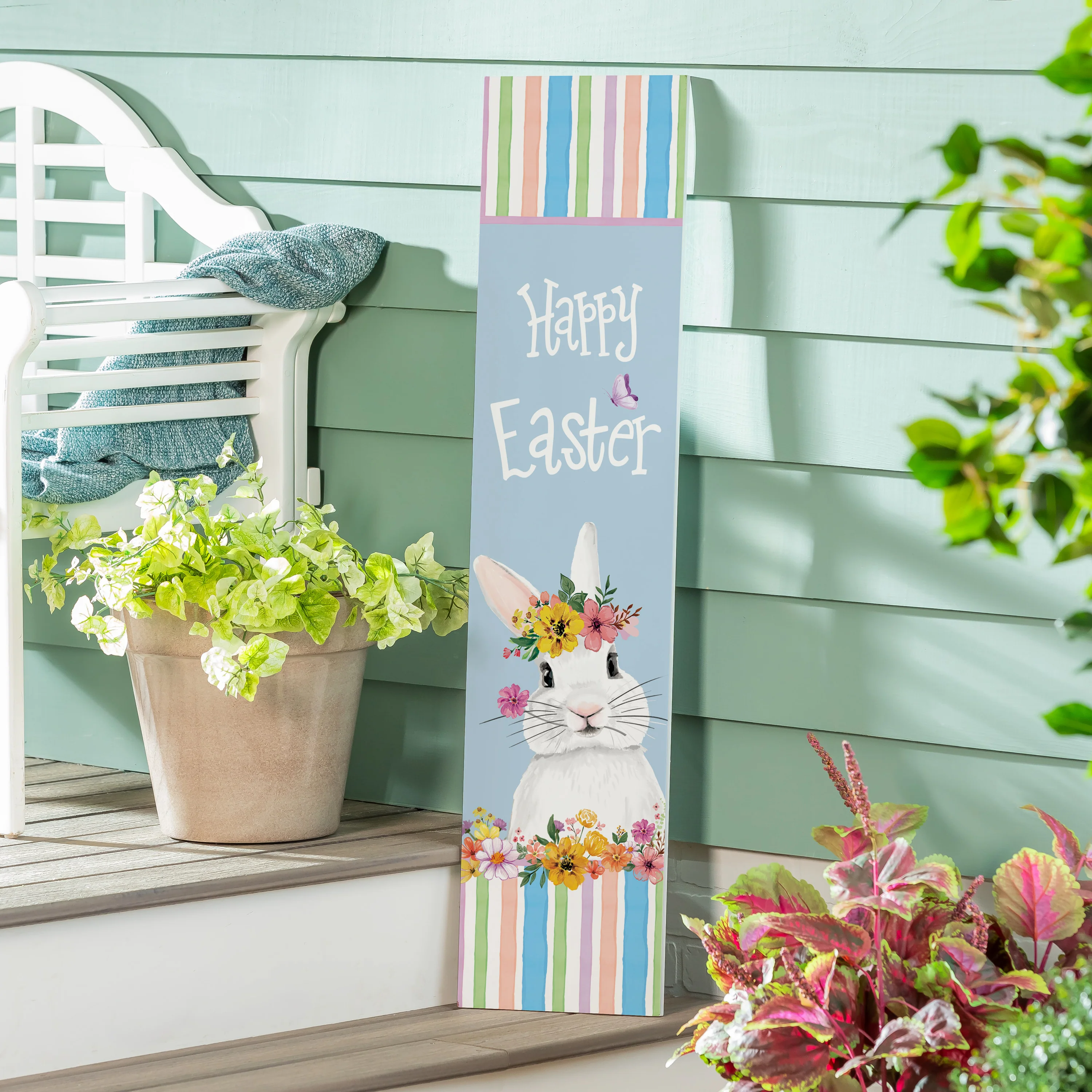 Bunny Blooms Garden Decor, Porch Leaner, Easter, 10.75" L x 46" H